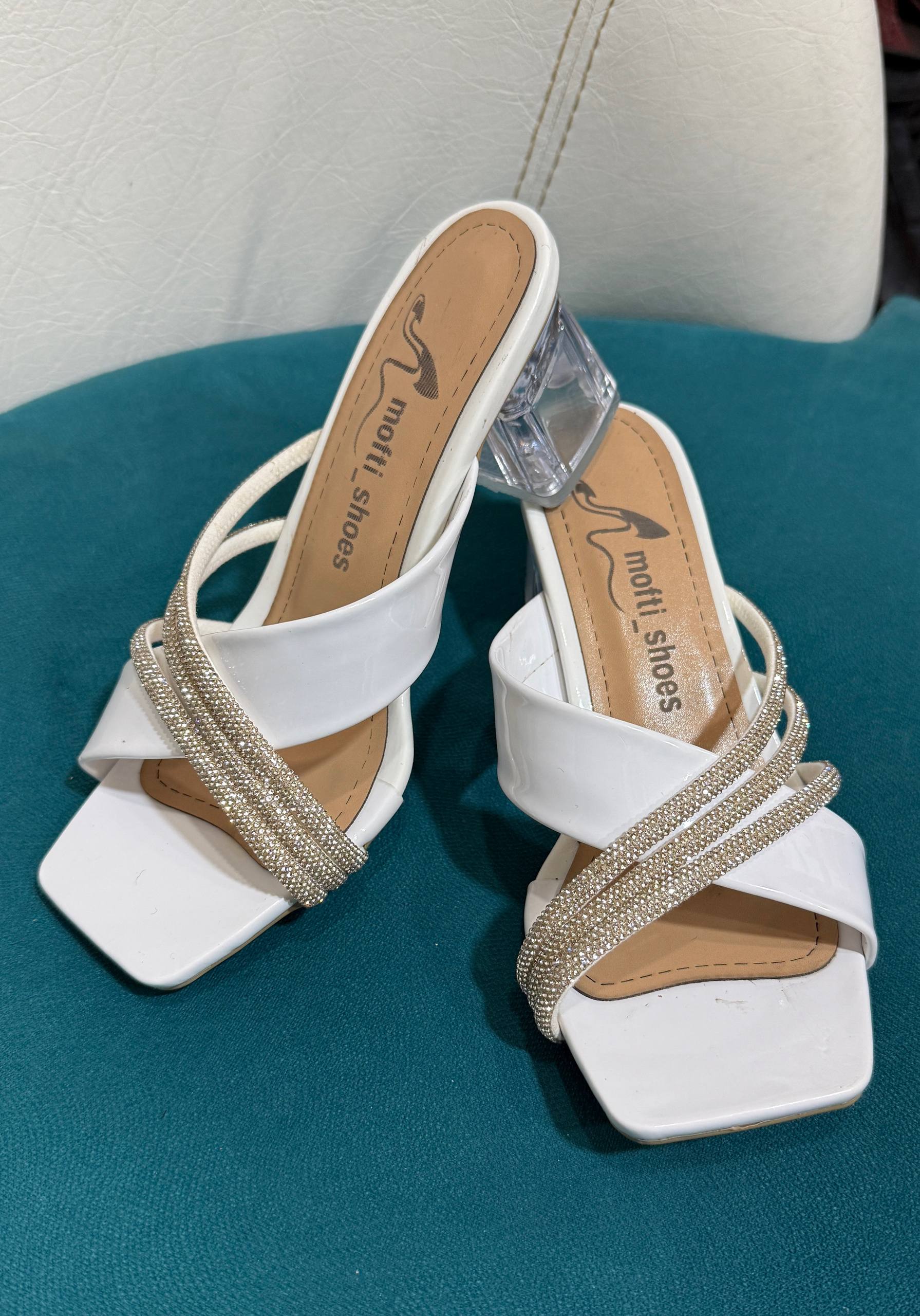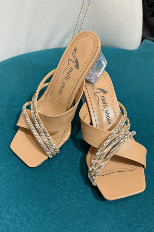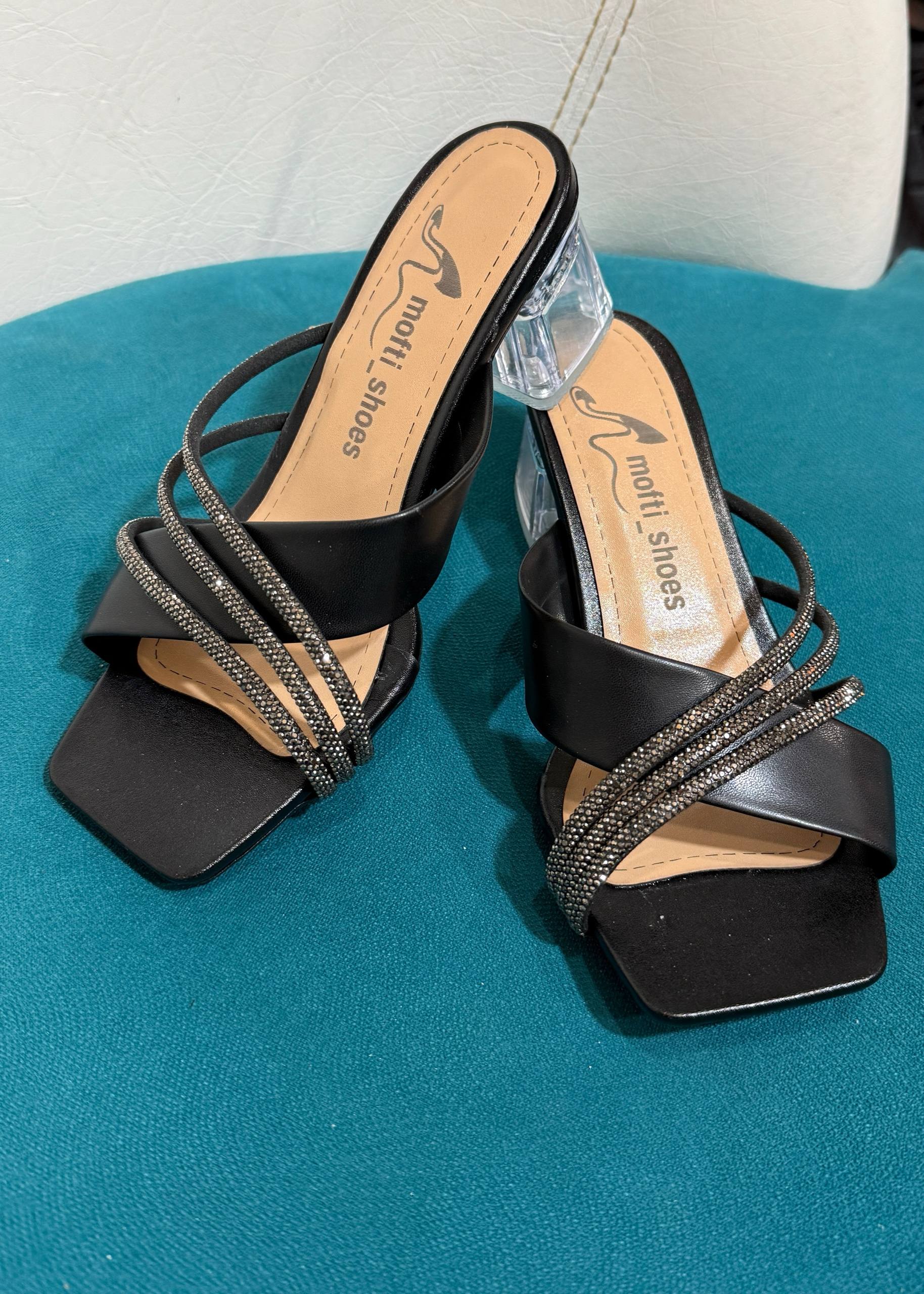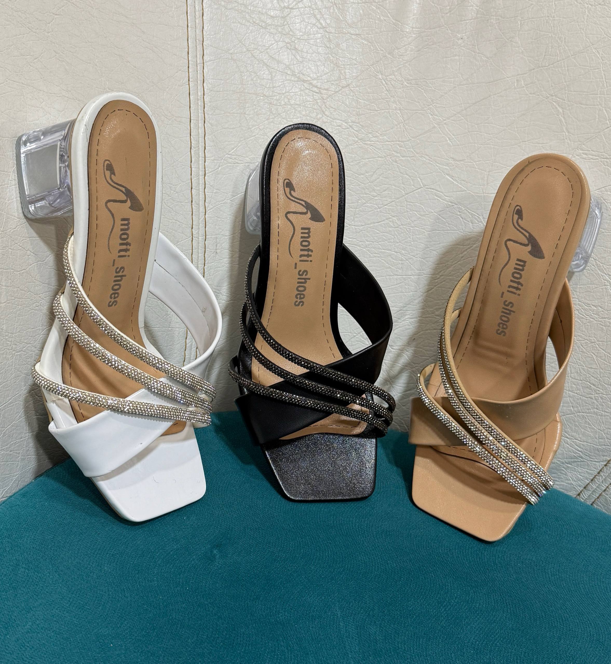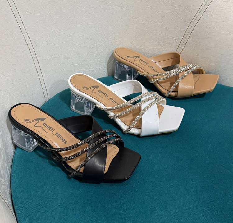 صندل نگینی مدل عاطفه پاشنه شیشه‌ای کد ۱۰۵